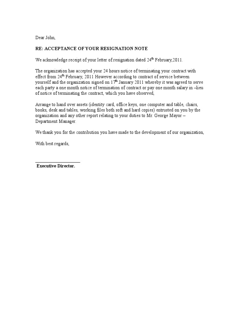Resignation Letters follow the letter format of stating the decision to resign first. Dear All After the employee has tender his resignation notethe employer should acknowledge receipt of the noticeand has to respond to the employee Now I am attaching sample resignation acceptance letterany member is free to add comments and inputs With best regards Elisante. Resignation Acceptance Letter Sample Doc In some cases you will find a time for leaving in addition to a time for turning up.