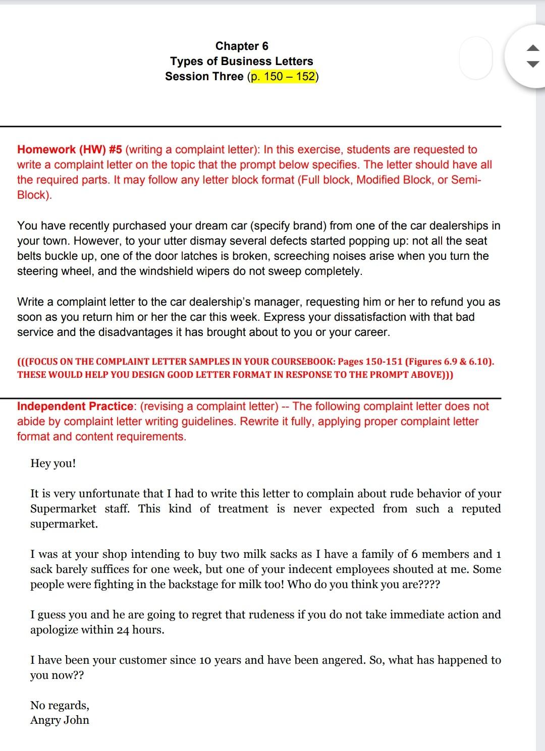 Solved Chapter 6 Types Of Business Letters Session Three P Chegg Com