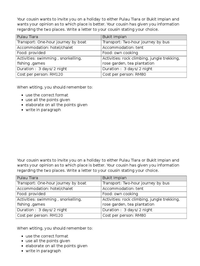 The format of writing an informal letter is explained in the following table. Now students have to take 2 papers well they are not actually taking additional papers but rather English subject will now be graded in 2 papers just like the Bahasa Melayu papers. Write a letter to your brother who has transferred to a boarding school.
