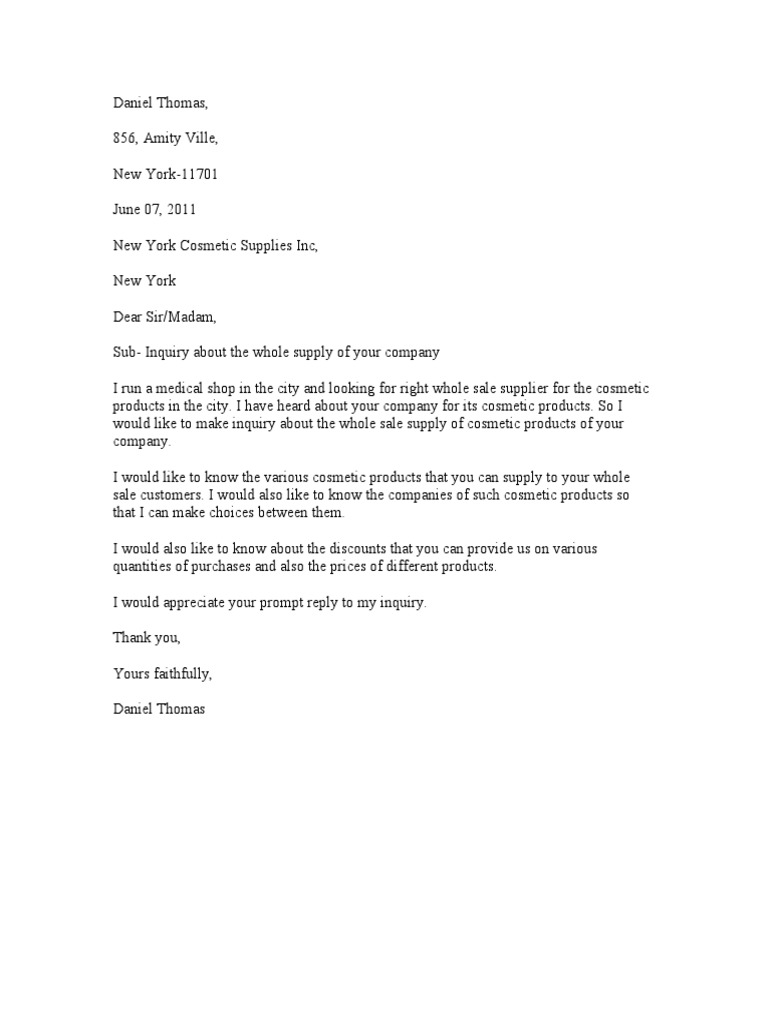 Sample Inquiry Letter In Word Format Pdf